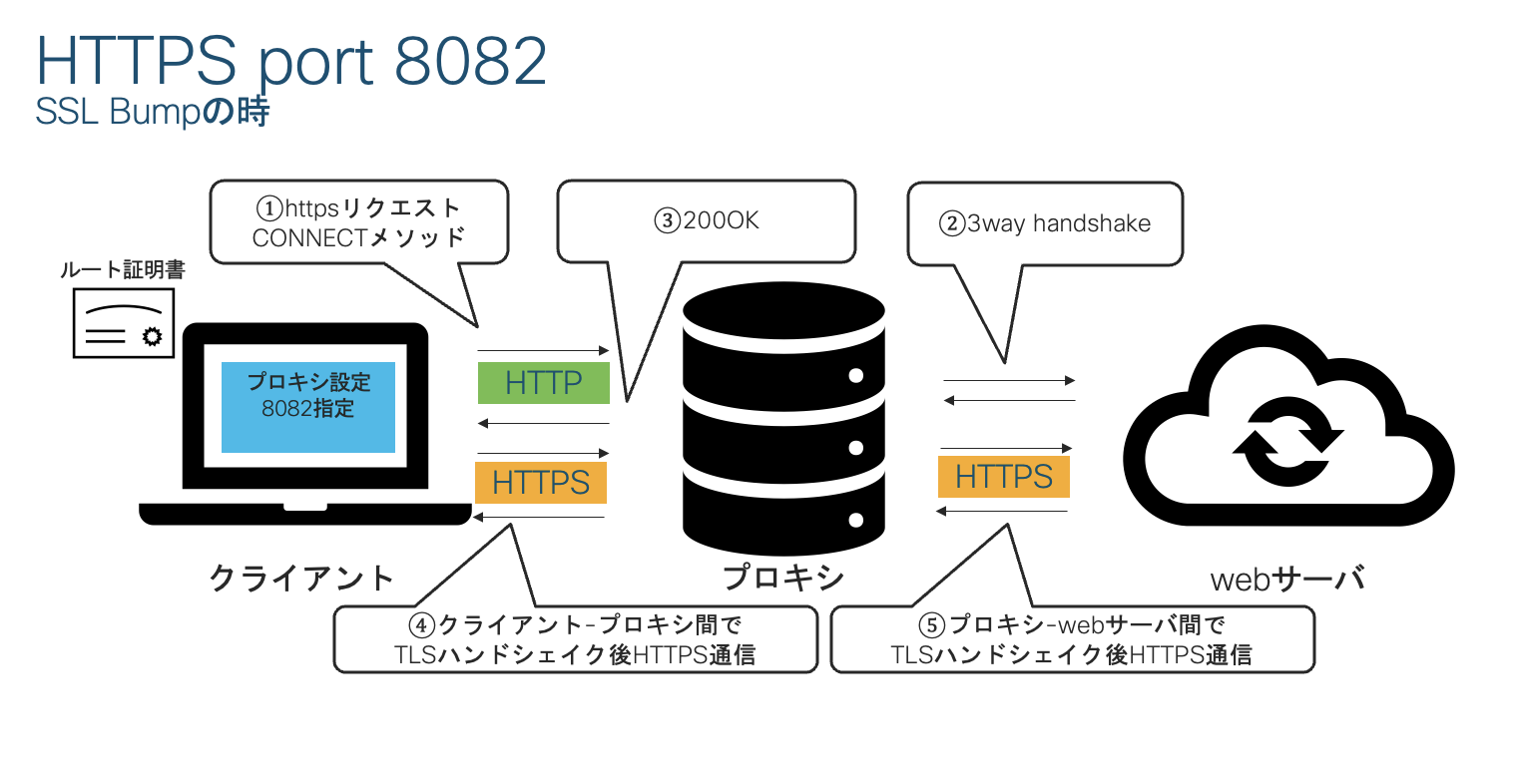 | 主な用途 | 通常のHTTP/HTTPSプロキシ | SSL Bump / 透過HTTPS |